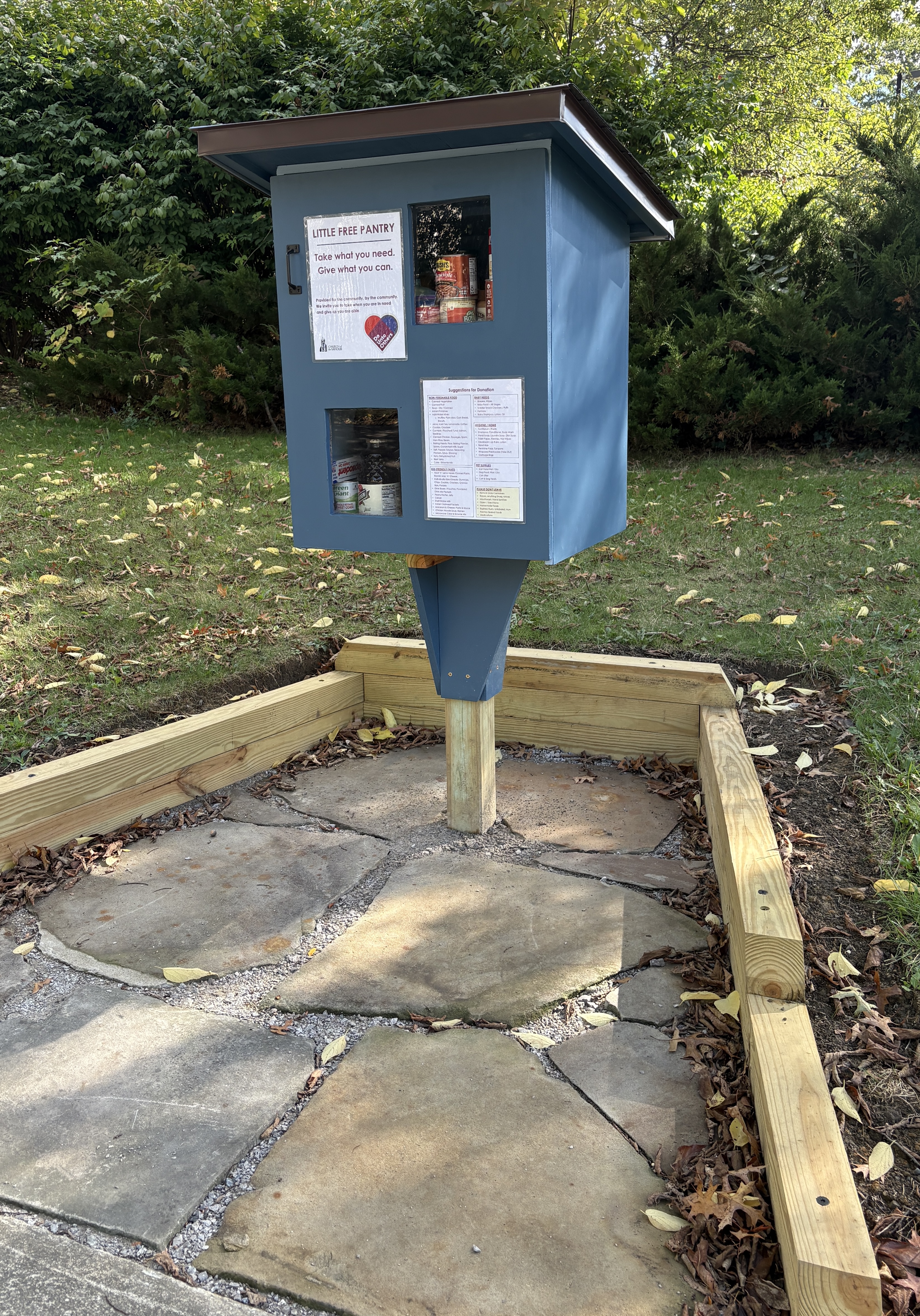 | Description | Provided for the community, by the community. We invite you to take when you are in need and give as you are able. It's God's love in action! |