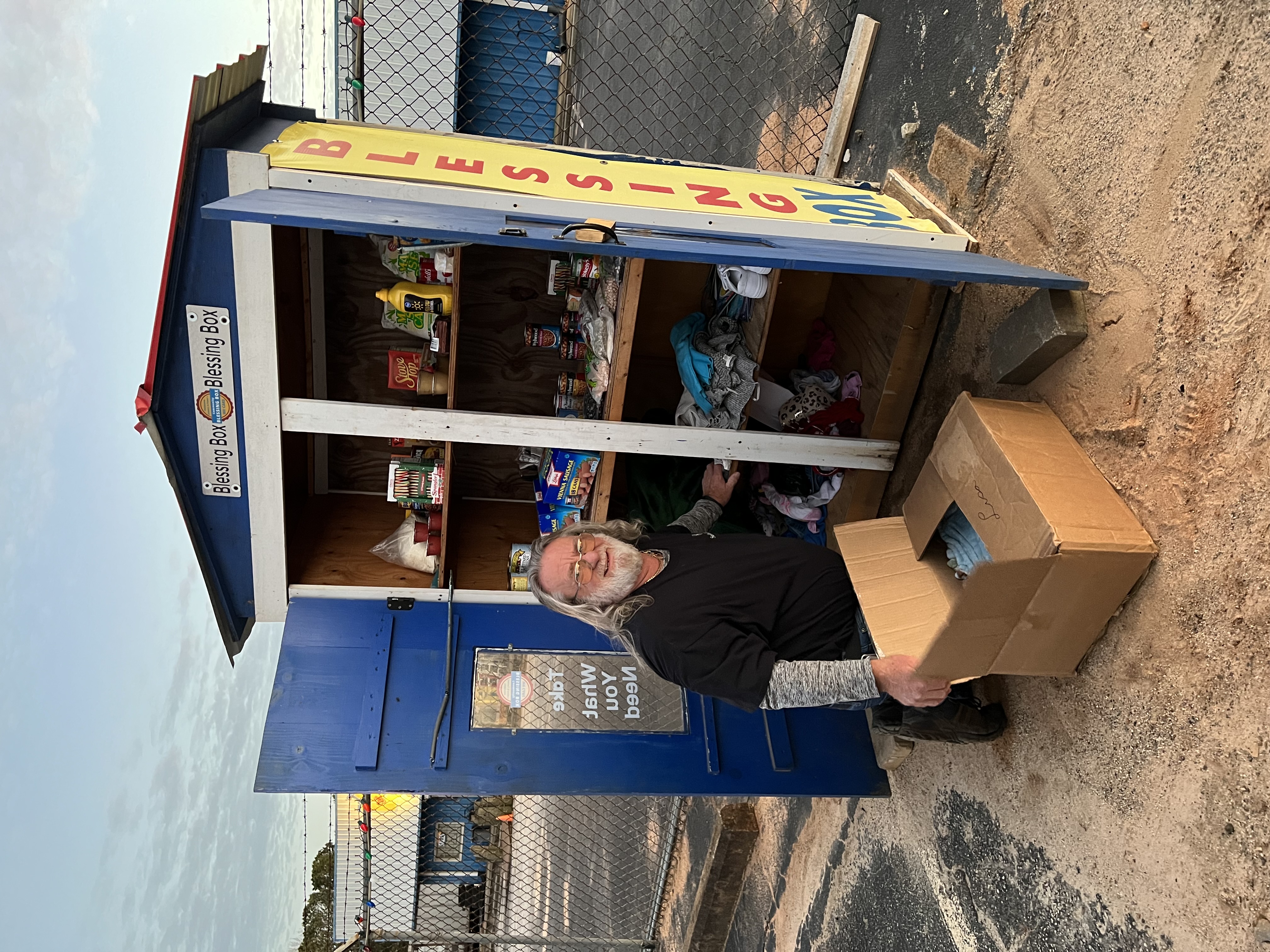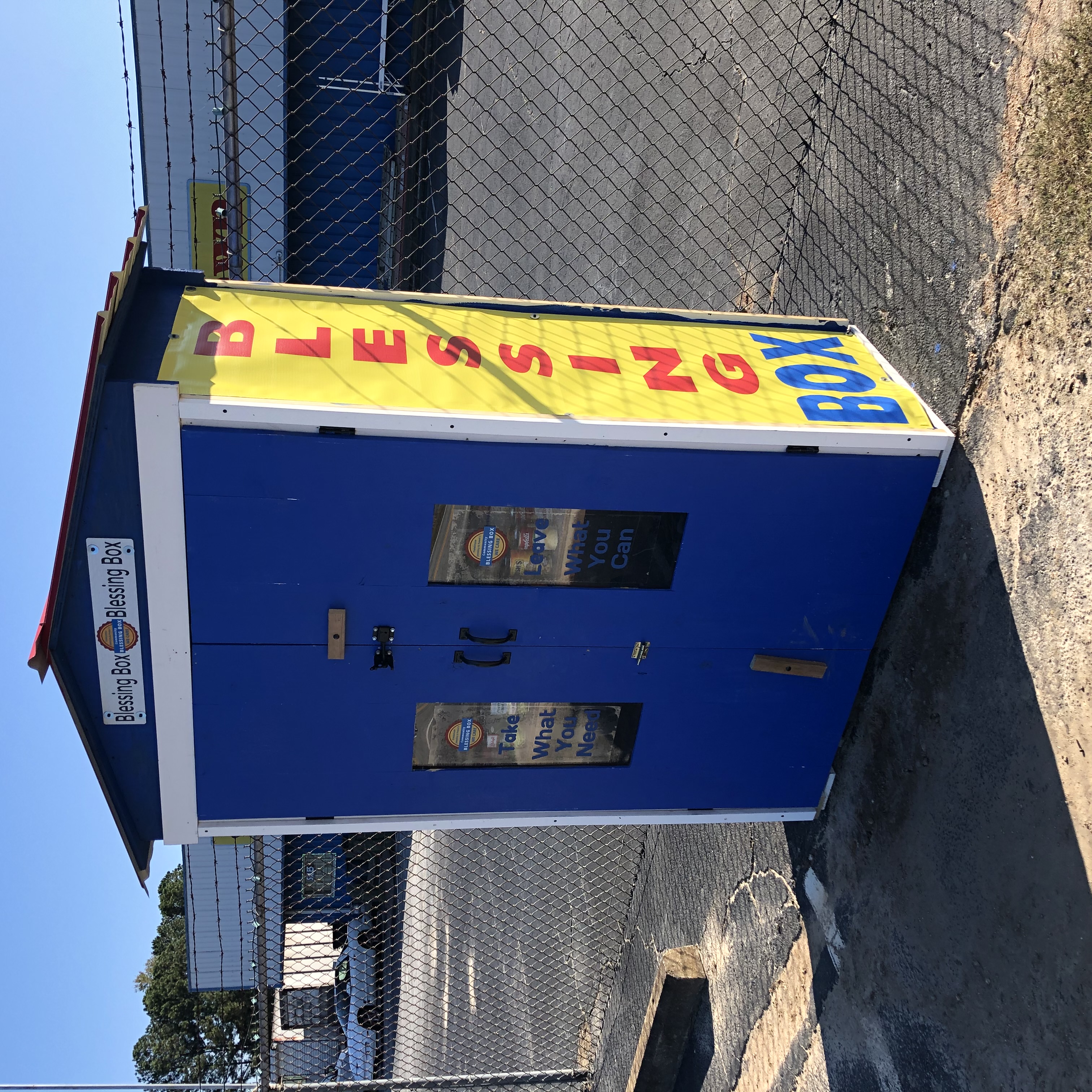| Description | Blessing box located outside the fence at Fieldstone Jewelry and Pawn. Open 24 hours. Take what you need, leave what you can. Non-perishable in-date,food items, personal hygiene,, coats, and blankets in season. |