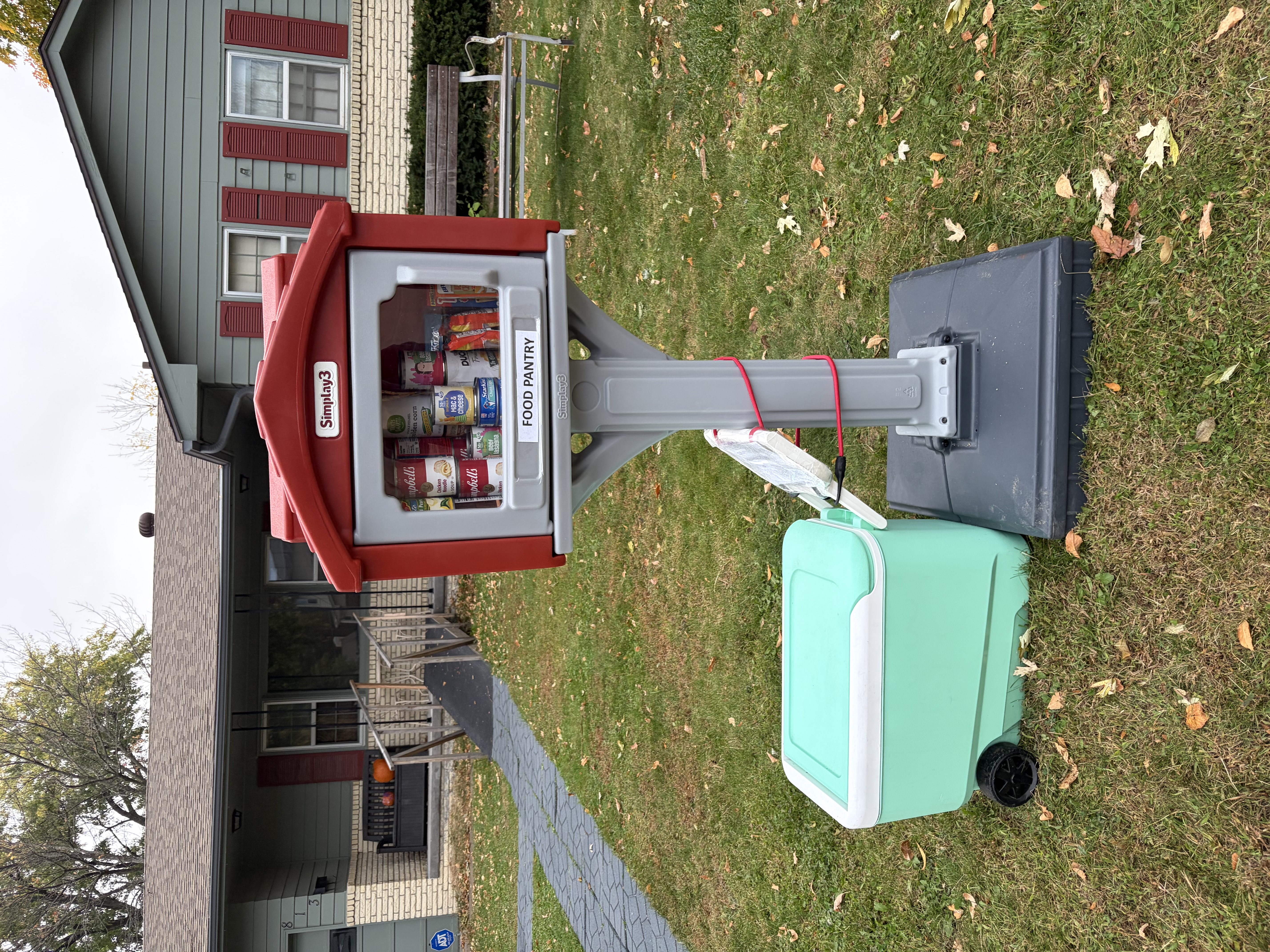 | Description | This is a small pantry with a cooler beside it. The cooler holds additional items. The items may vary from day to day . We will have non-perishable food items and some hygiene items as available. Thank you. |