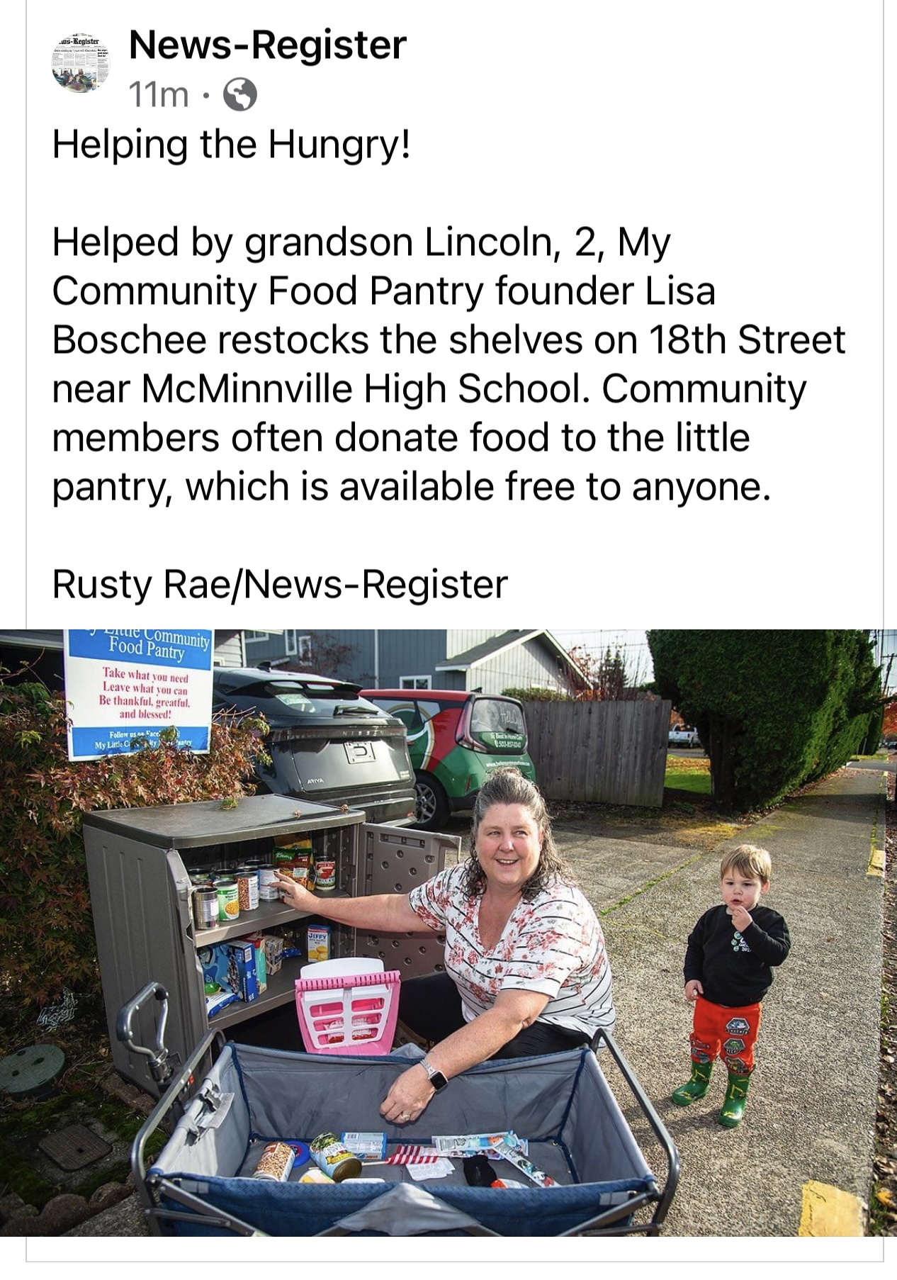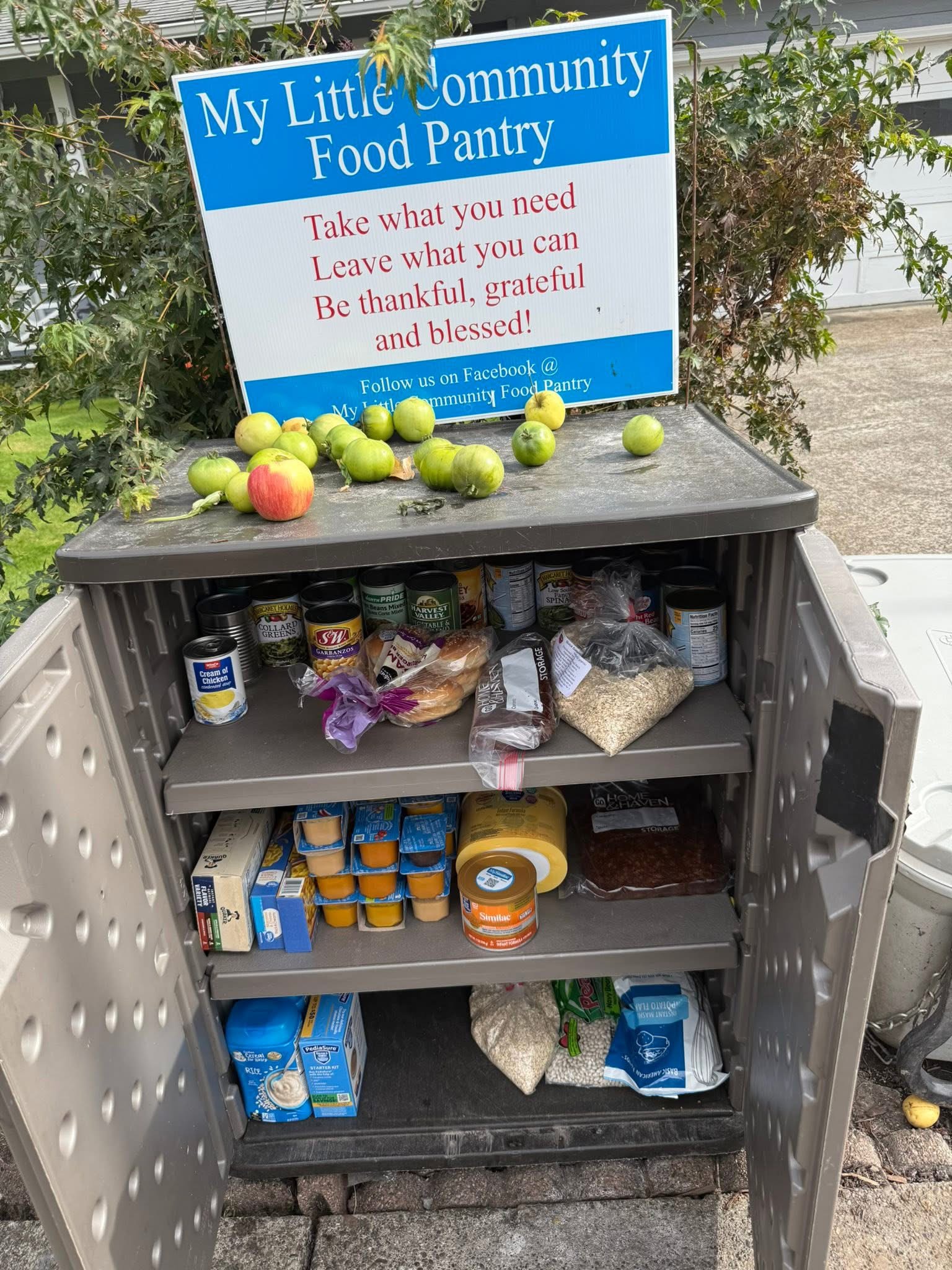Self service free pantry open 24/7 365 days. Take what you need. (But not all) Give what you can. Together we can make a difference! Follow us on Facebook My Little Community Food Pantry in McMinnville OR. |