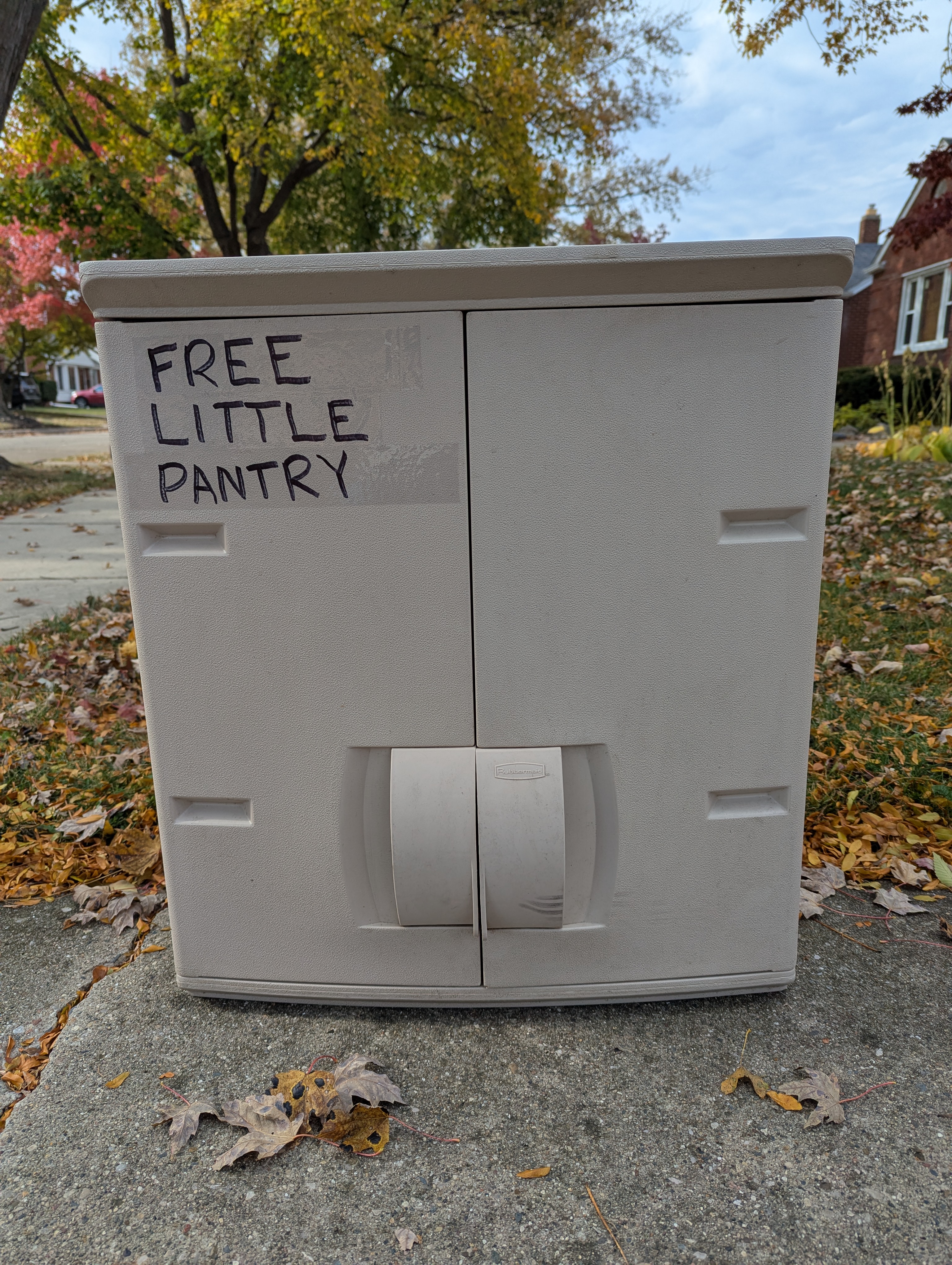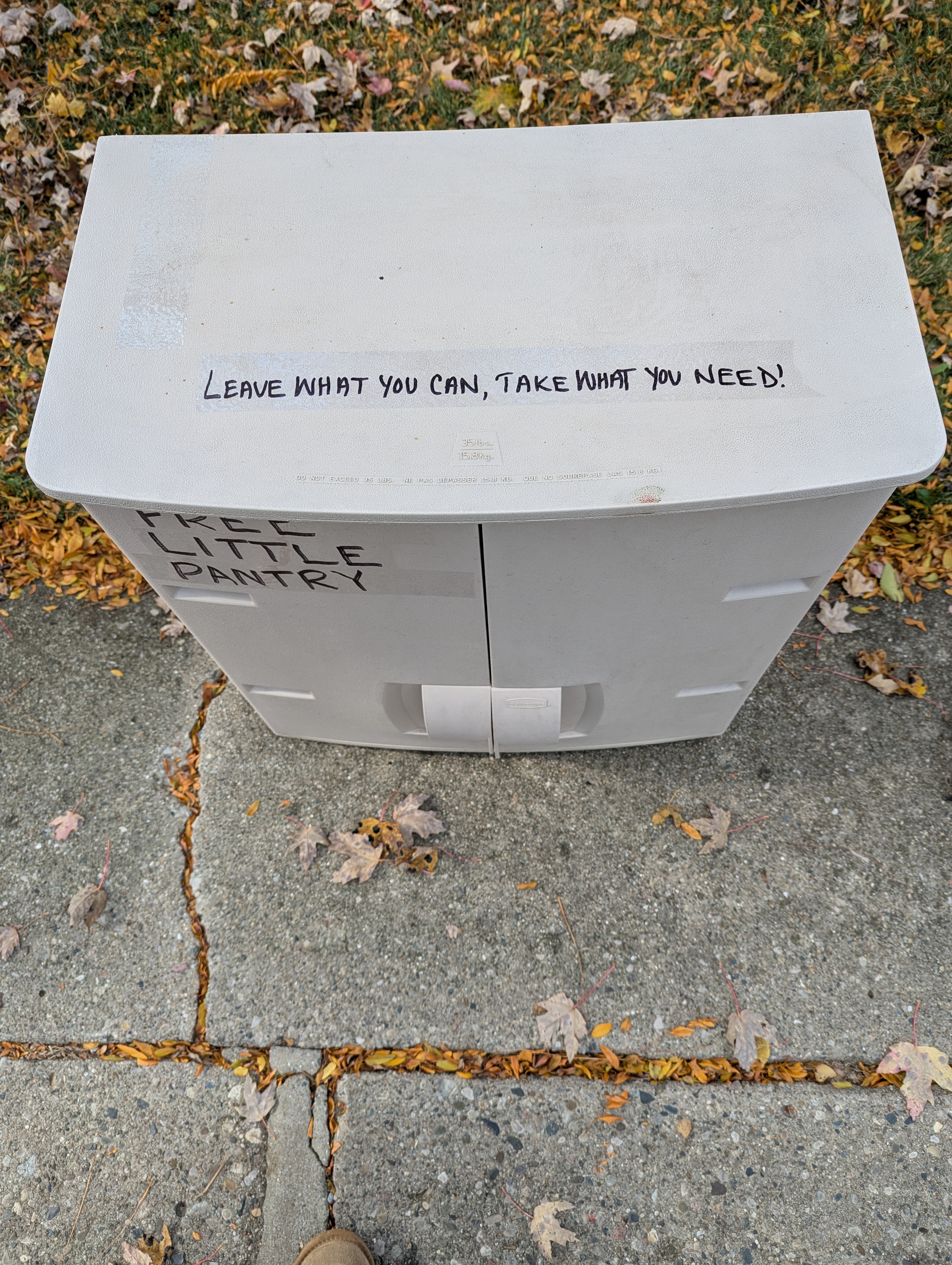 A more permanent pantry is in the works. Leave what you can, take what you need!
