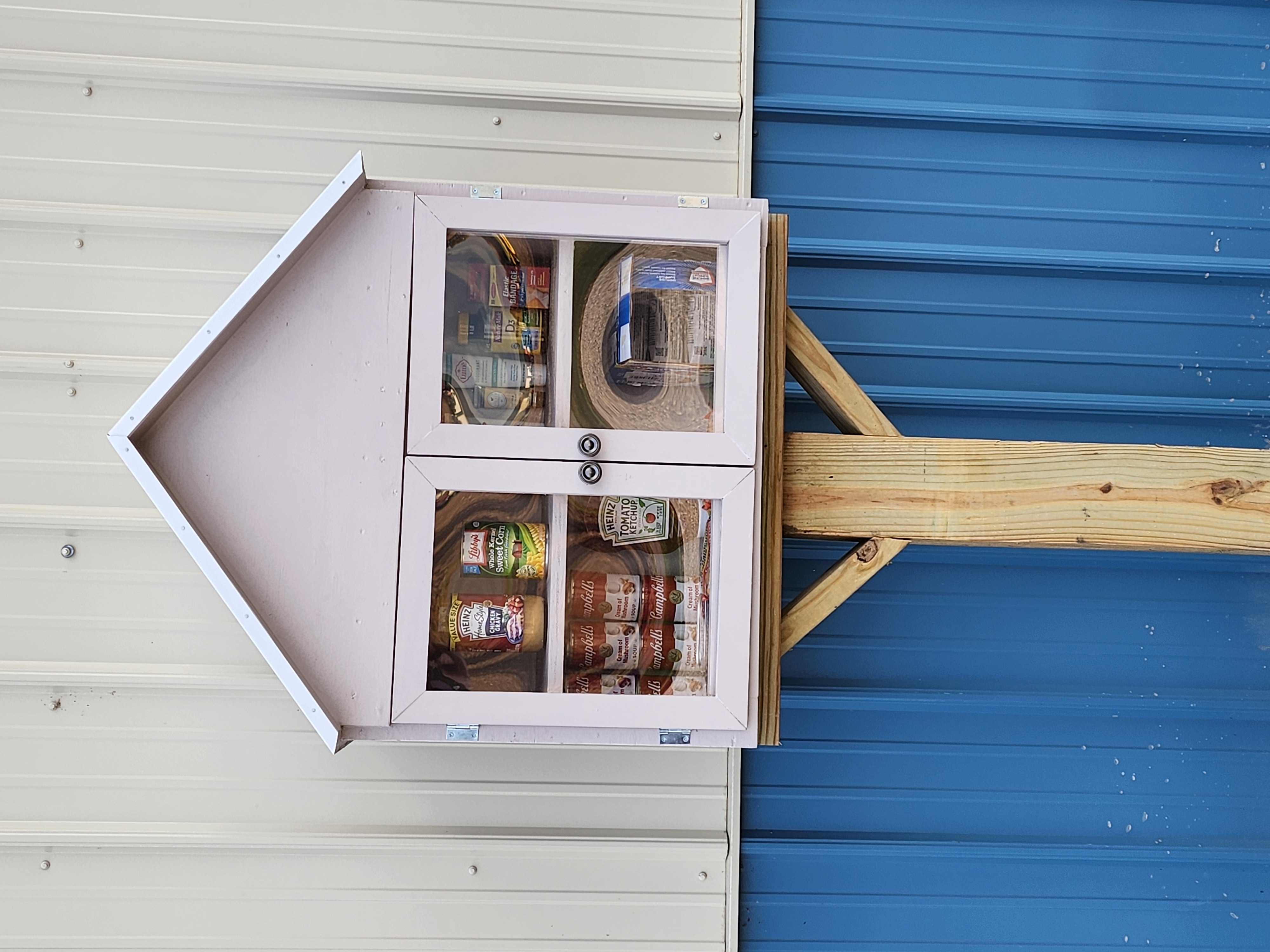 A Little Free Pantry in front of Jake's Feed and Garden.