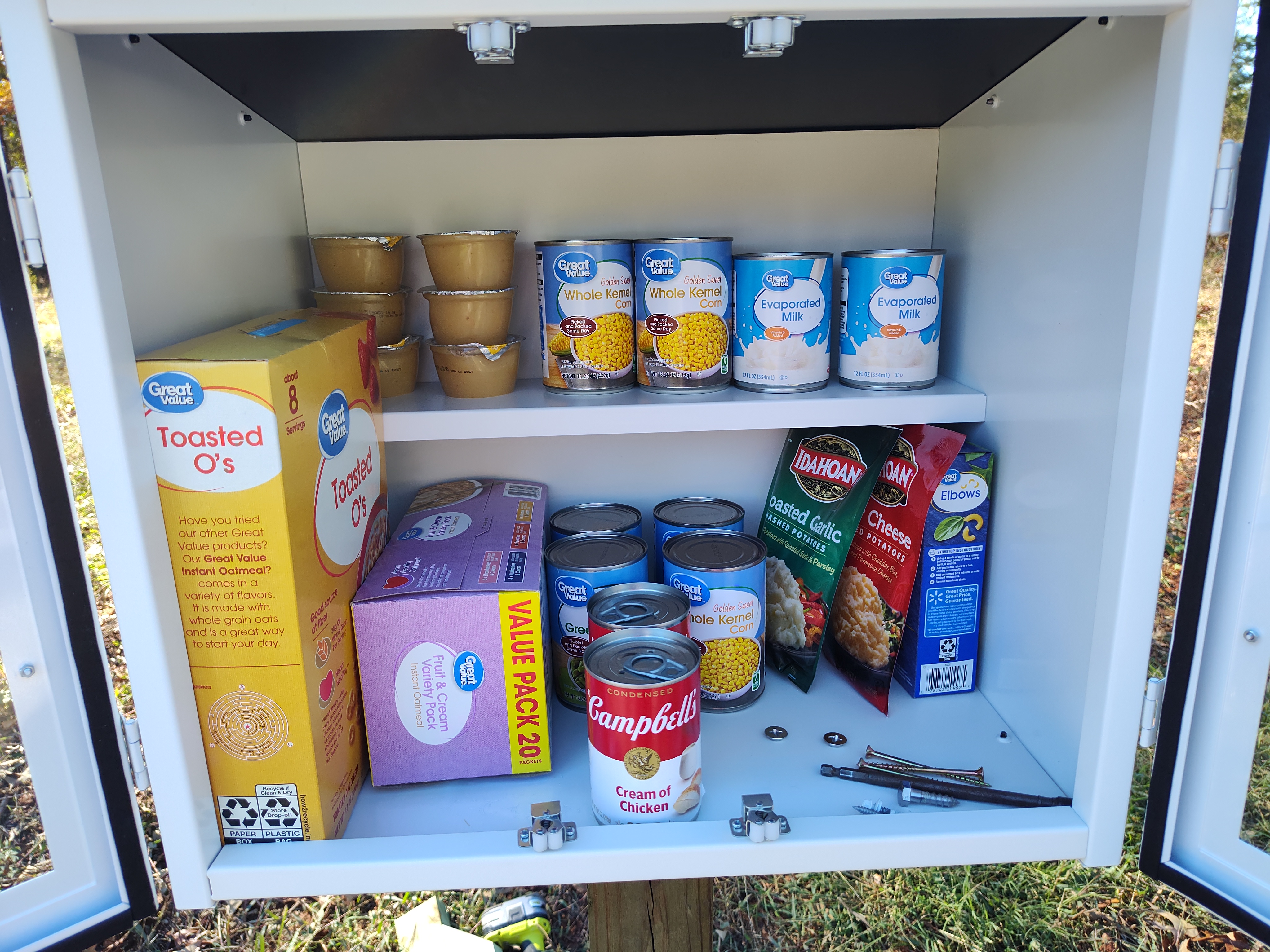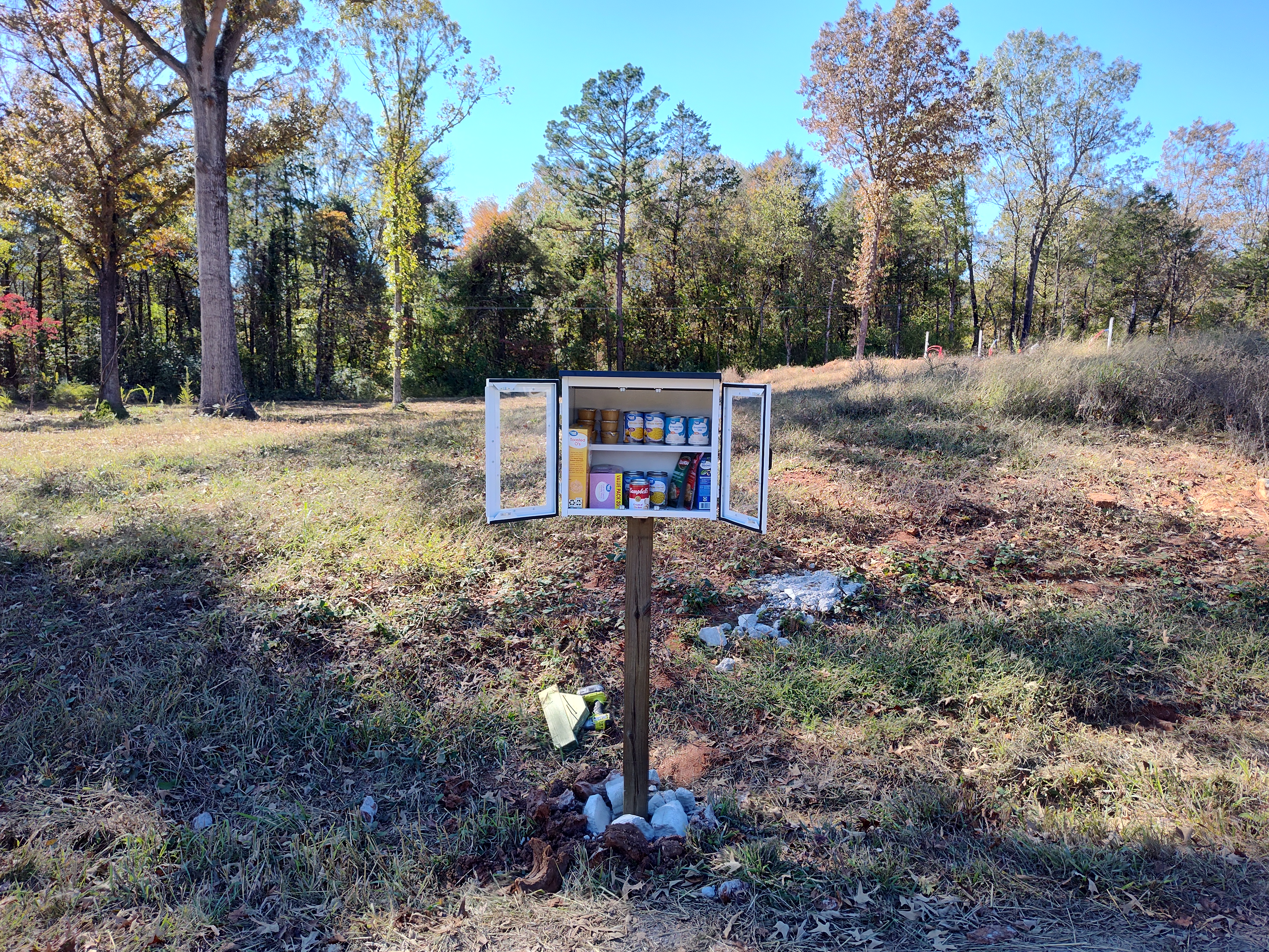 | Description | The students of Mt Olive Microschool and members of Mt. Olive community work hard to keep this little pantry box stocked for those in need of food items. At Thanksgiving and Christmas there will also be holiday dinner items available at the box. Coming soon: a toiletries and home goods box |