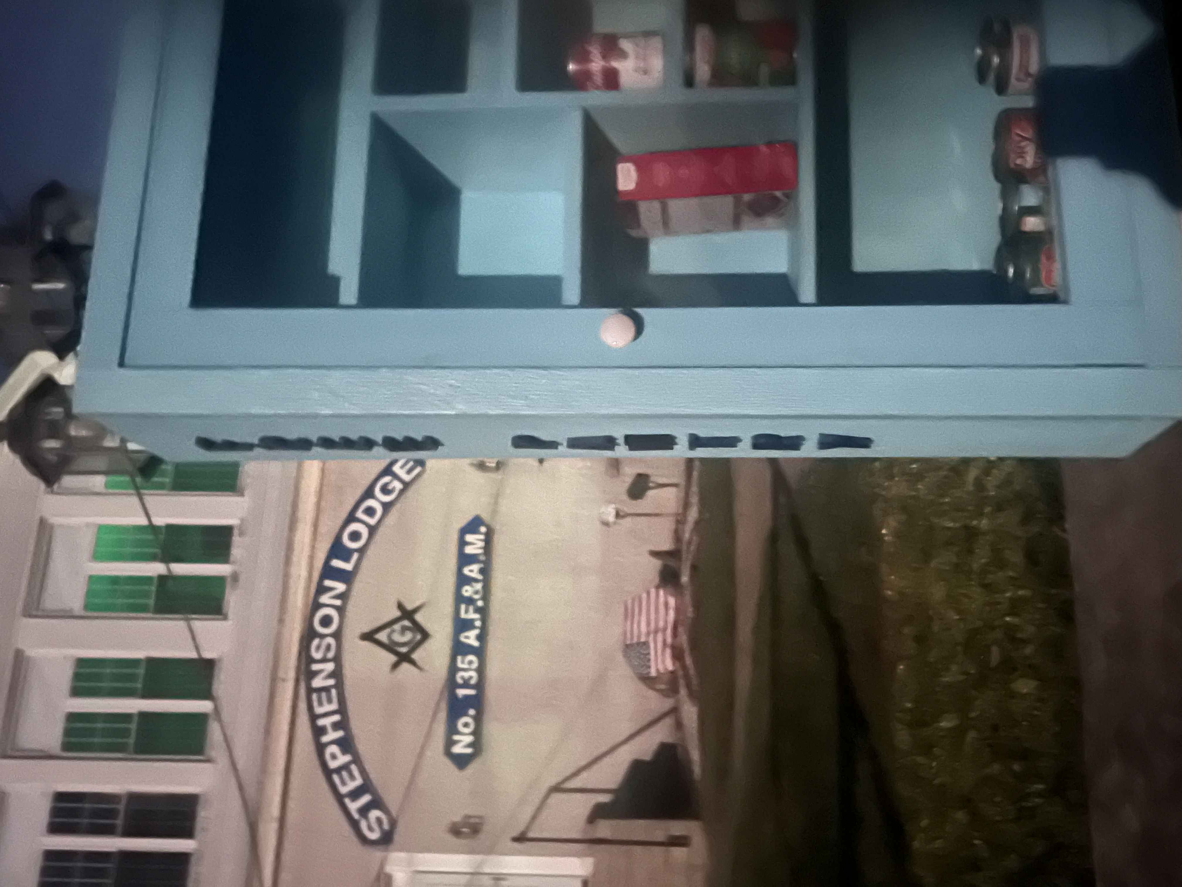 | Description | Green box attached to wall in front of Masonic Lodge. |