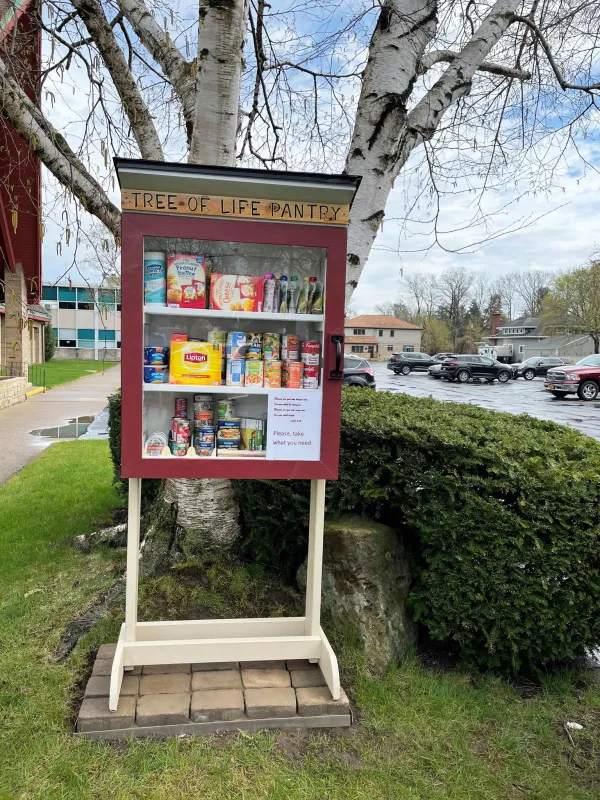 | Description | Sister Joanne Suranni, CSSF, and the Faith Formation Class discovered a spot under a large birch tree at the Prince of Peace Worship Site. This location is ideal as it is near the crossroads of Niagara Falls Boulevard and Military Road, two busy thoroughfares where many homeless persons are often seen. |