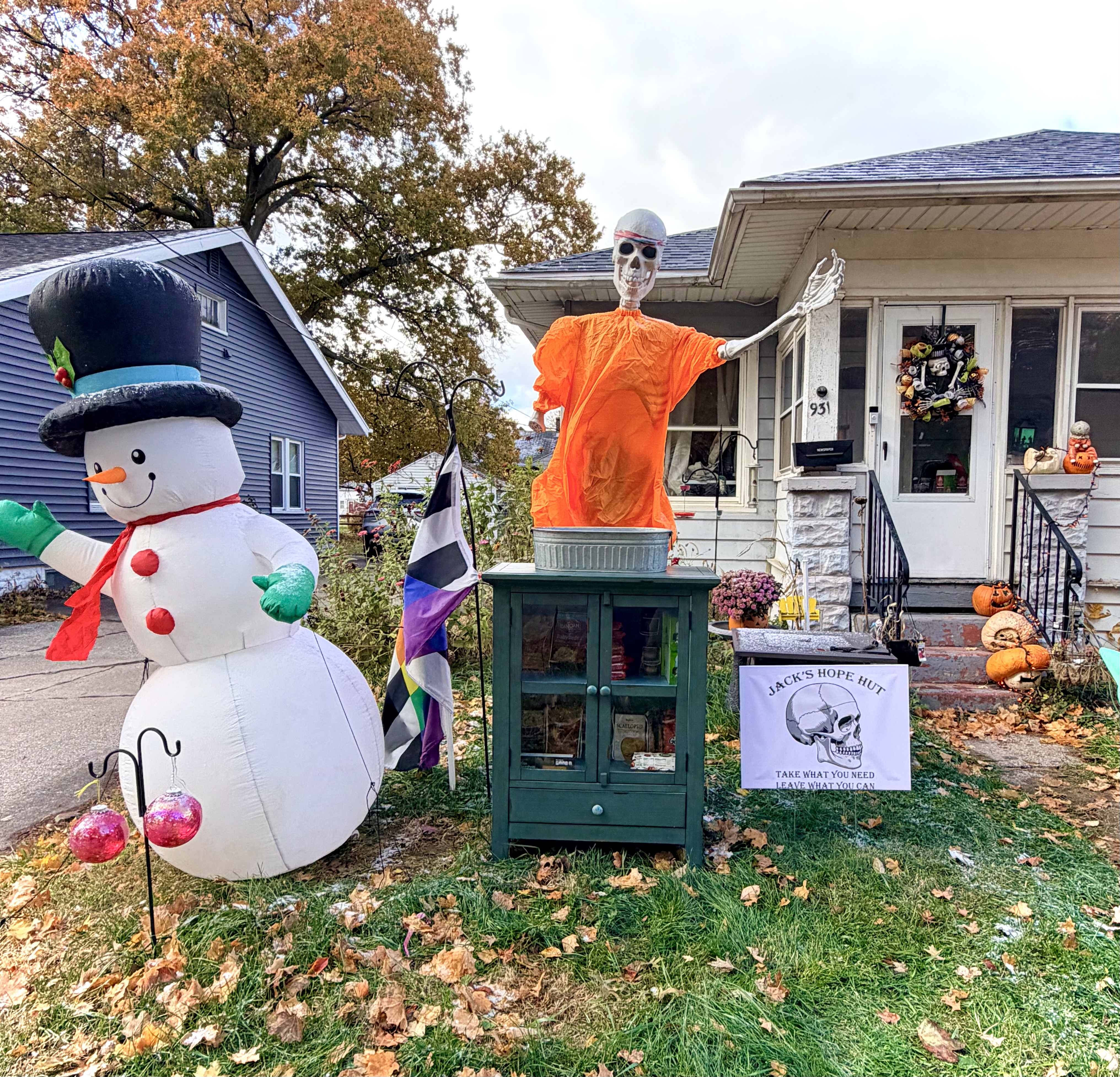 | Description | Our friendly neighborhood skeleton, Jack, wants to make sure no one goes hungry! Seasonally appropriate items available to anyone who needs it, no questions asked! Take what you need, leave what you can! |