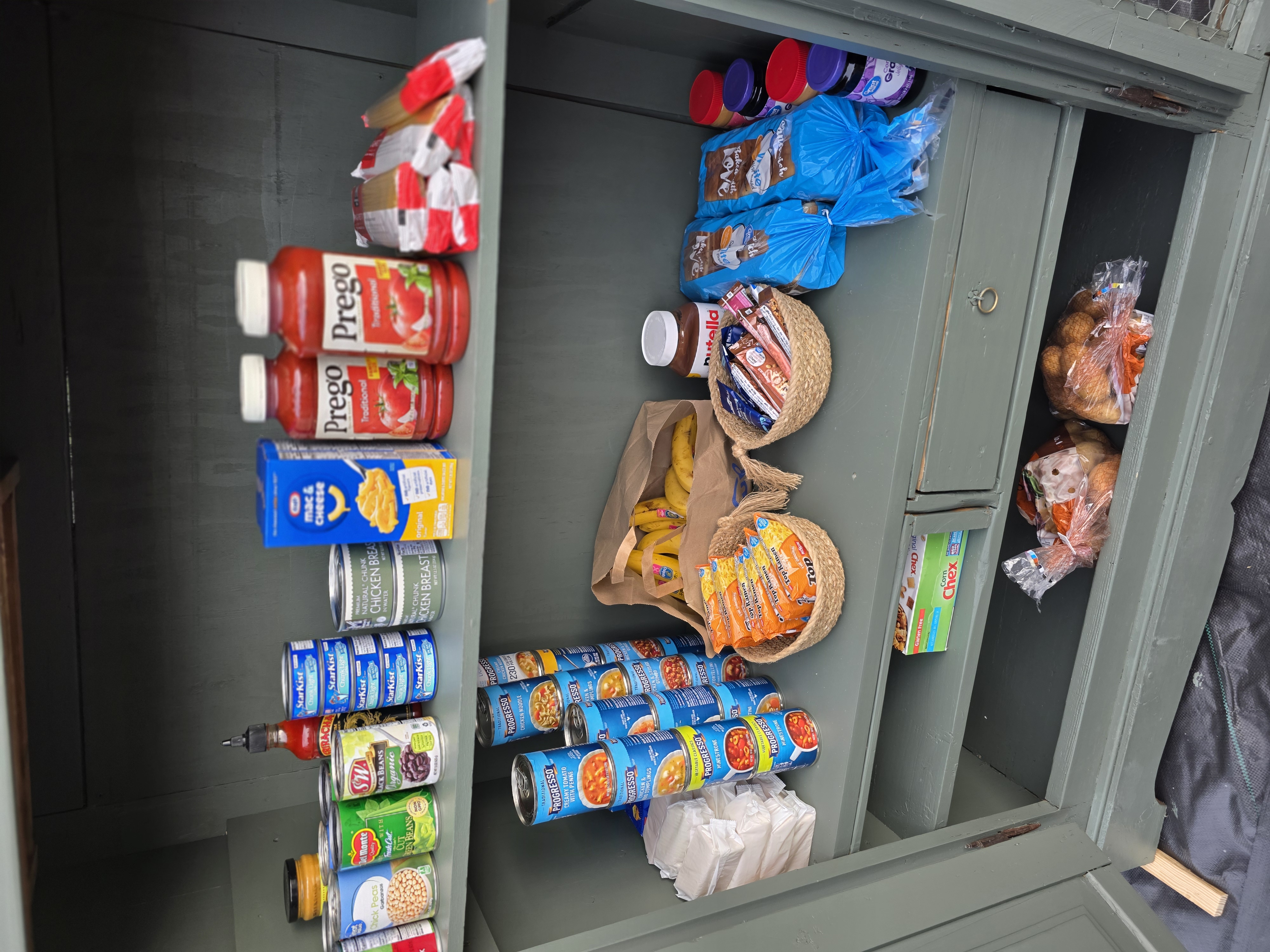 | Description | Community food pantry for those needing a hand up. Replenished daily. Take what you need, leave what you can. |