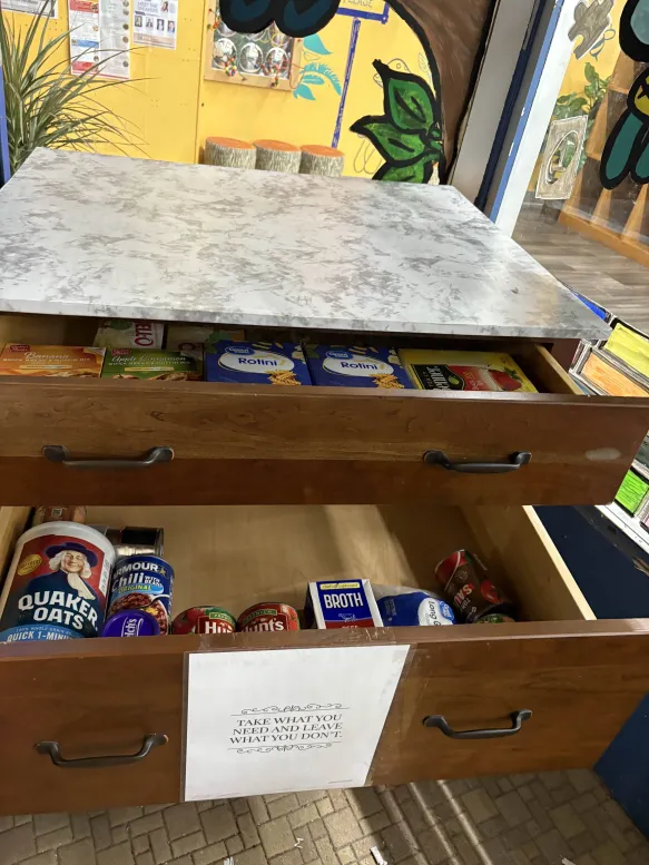 | Description | The Bumble Pantry provides free shelf-stable foods, baby items, hygiene products, and ready-to-cook meal bags for the Leavenworth community. Housed in a 3-drawer cabinet and stocked through local donations, itβs open to anyone who needs support. Take what you need, leave what you can. ππ |