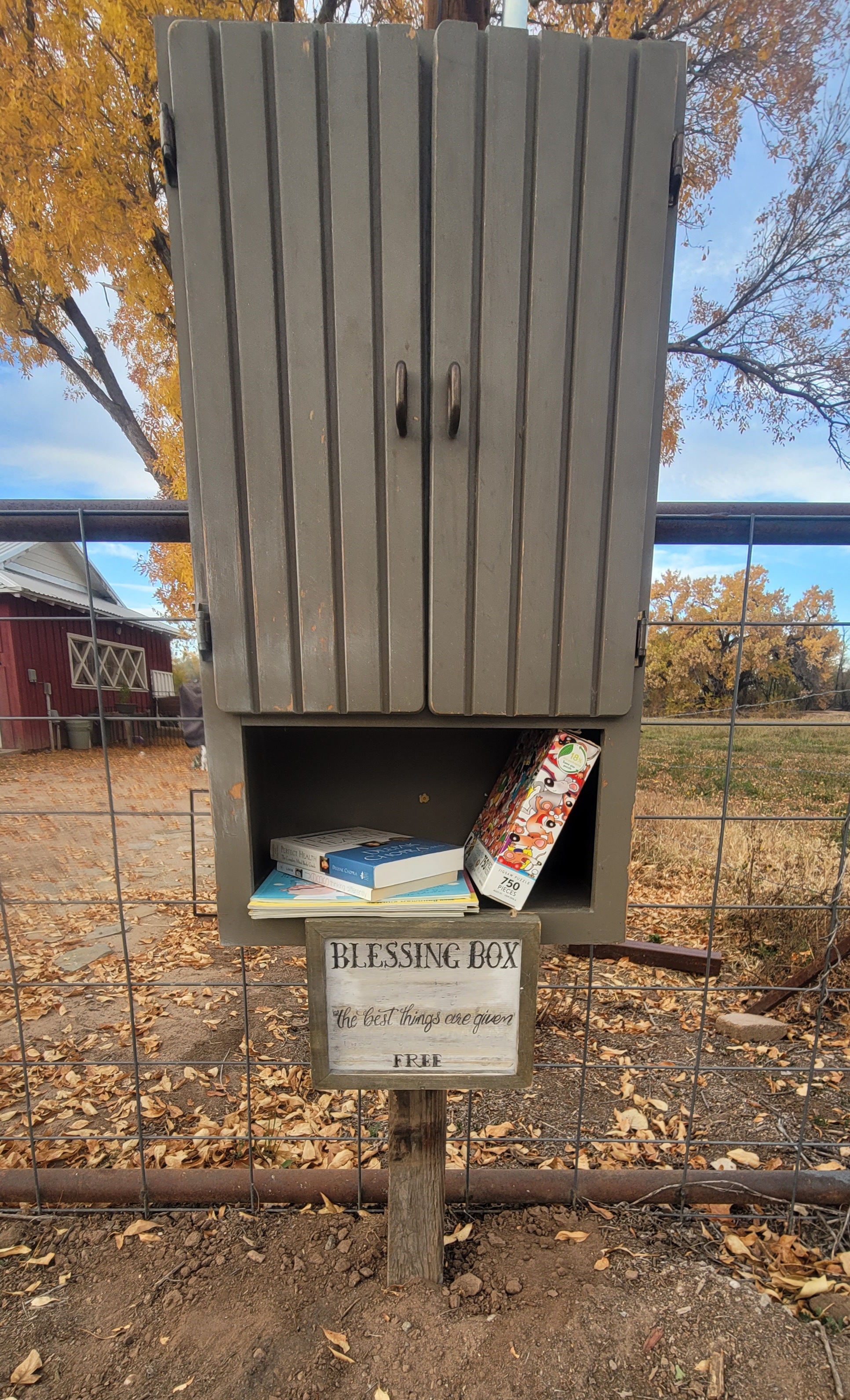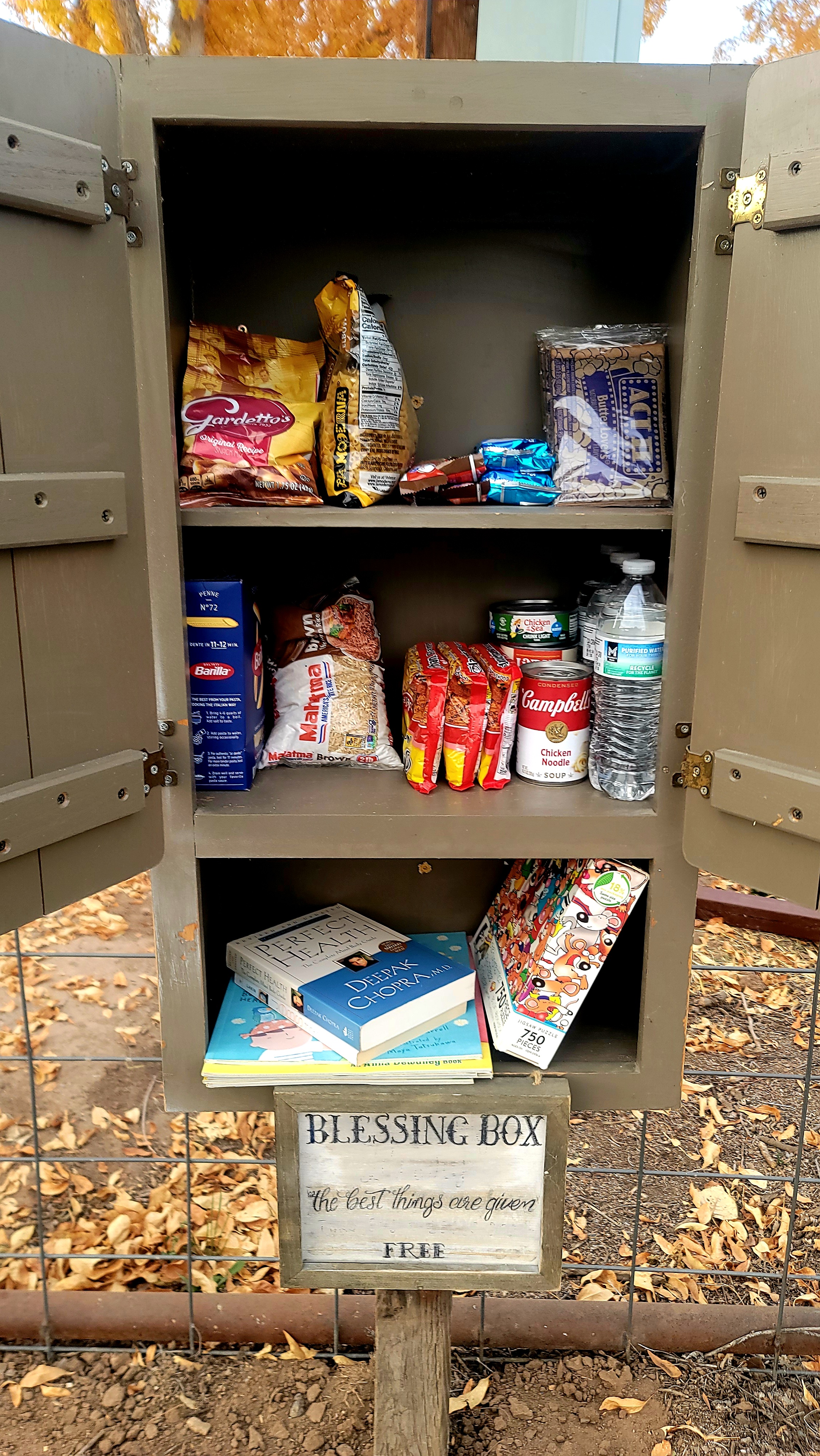 | Description | Blessing box stocked with basic non perishable food items, books, and other miscellaneous items such as clothing & shoes. Please feel free to drop off donated items at the foot of the box or stock it if you prefer. Thank you and God bless! |