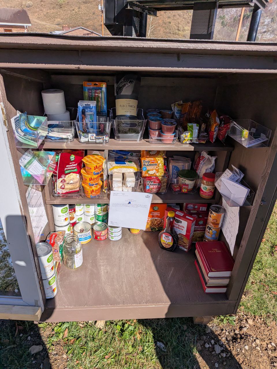 | Description | Located outside of Hamilton Chapel, contains non-perishable items, hygiene products, bibles, and other items |