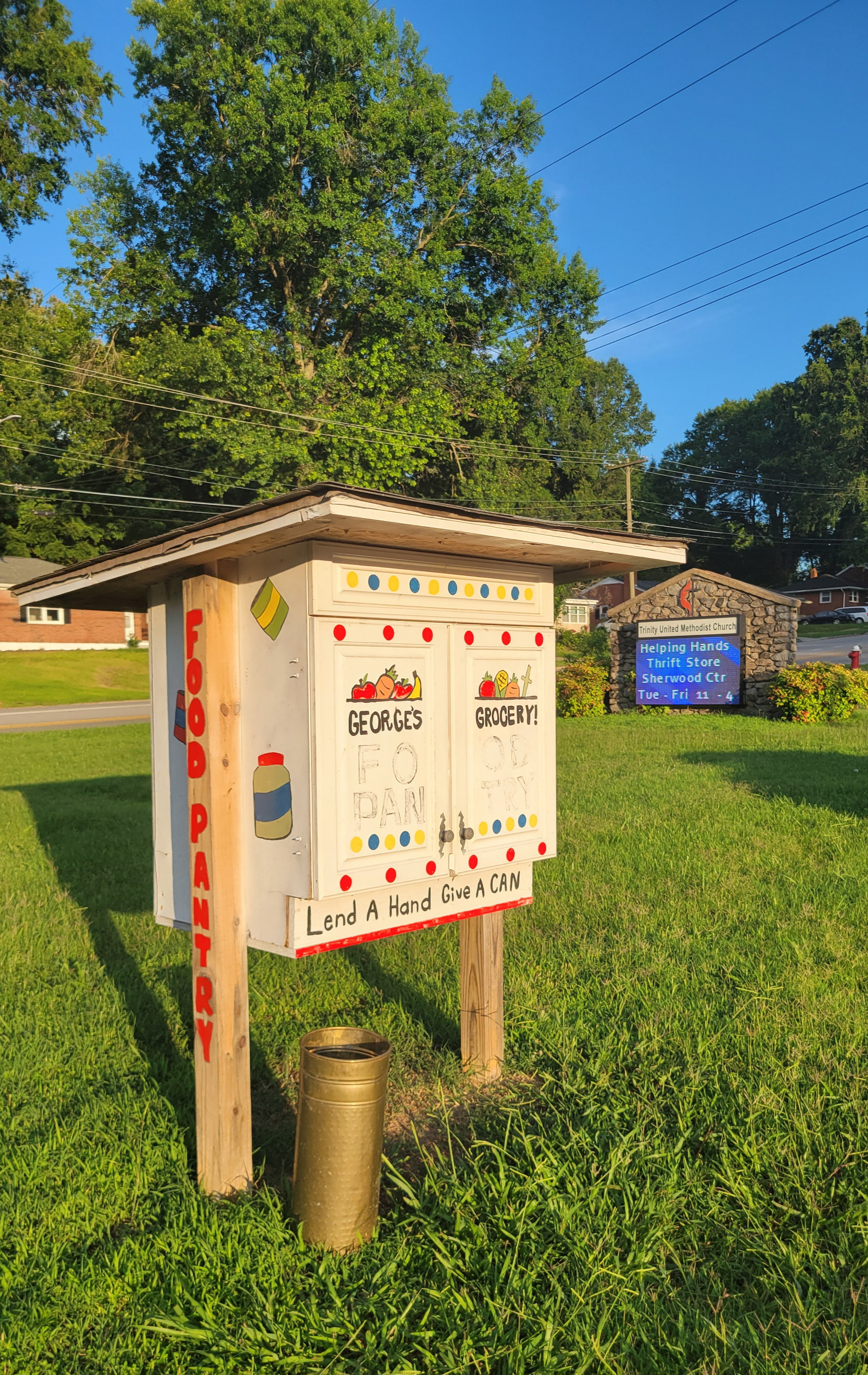 Description This Pantry is located in the front yard of Trinity United Methodist Church, located at 405 Arnett Boulevard in Danville, Virginia.