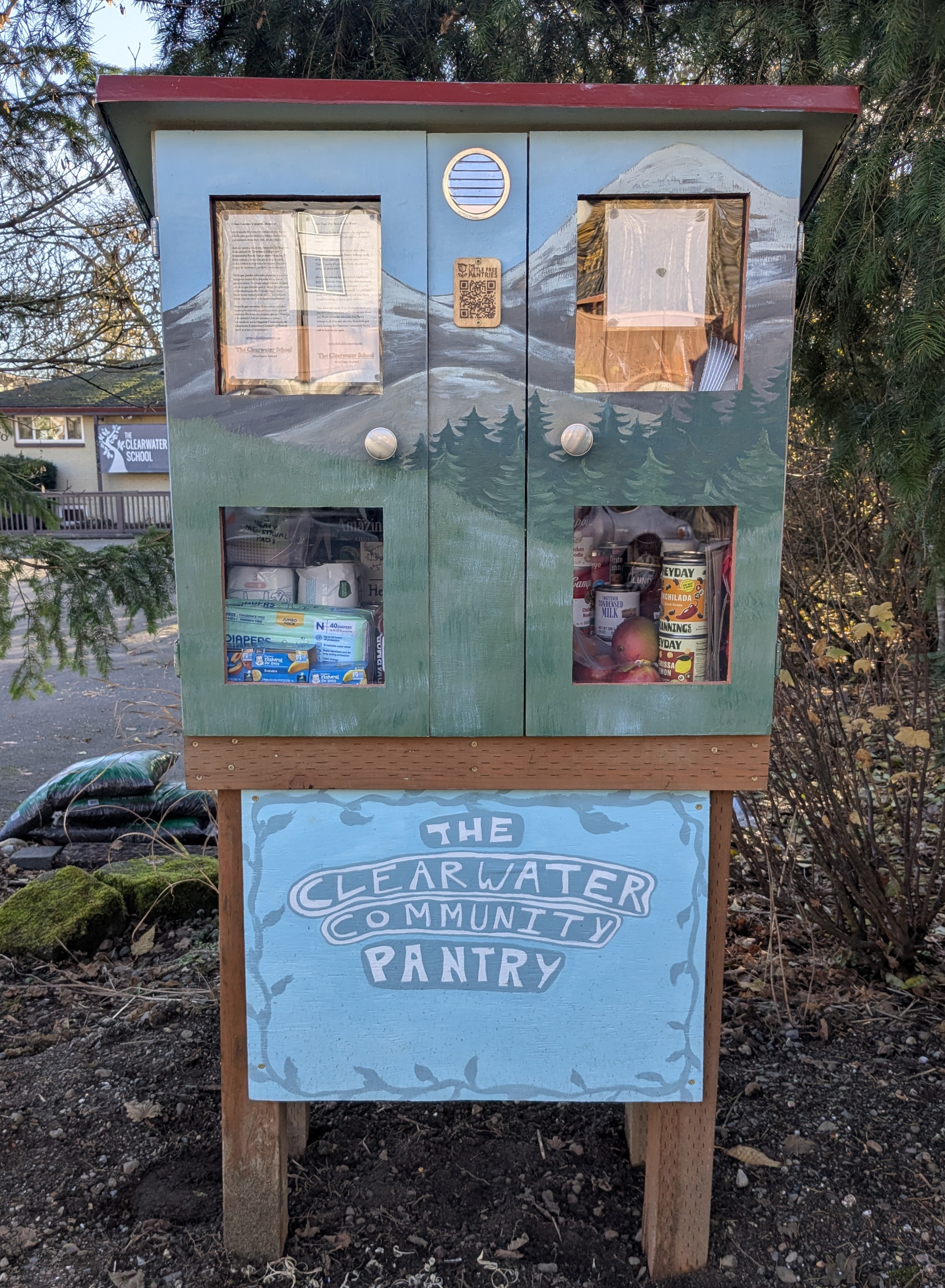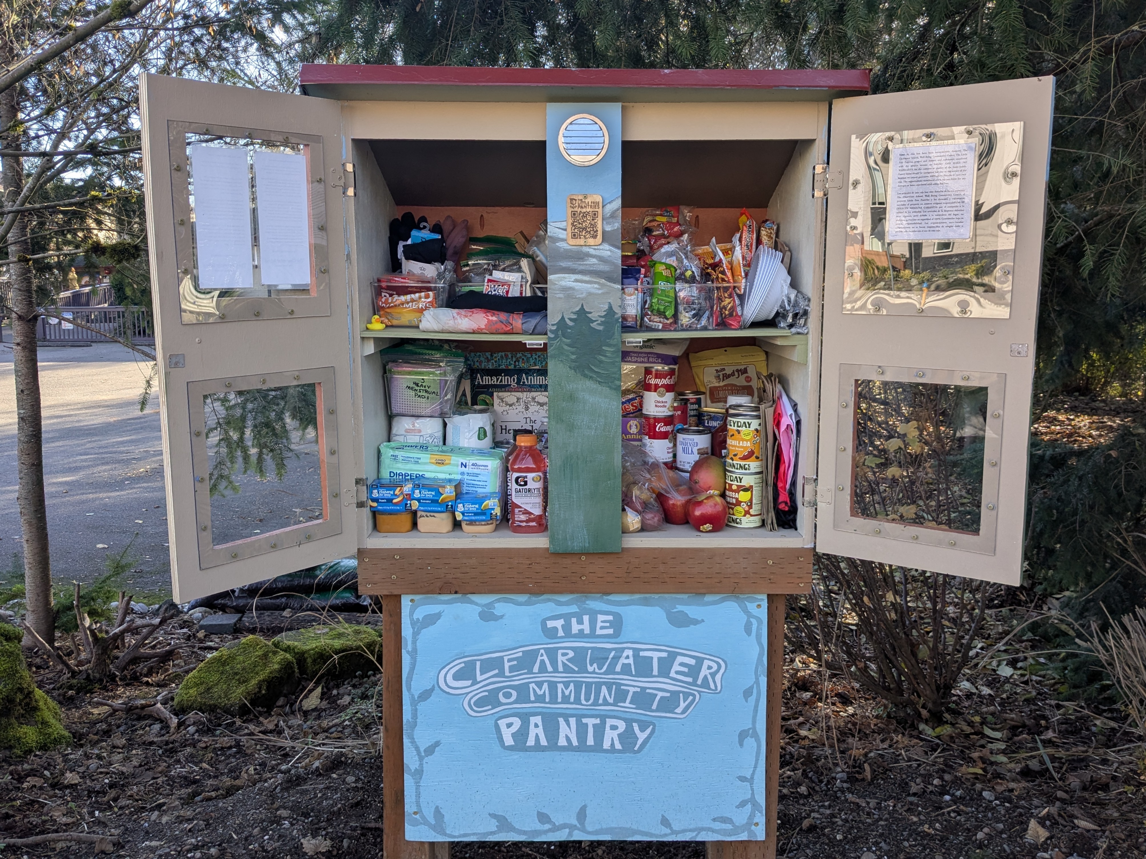 This box is for you, please see it as our neighborhood's. This pantry was jump-started by youth reactions to a growing need, we hope it can be a long-lasting community touch point for the neighborhood. The Clearwater School is an independent democratic free school that serves ages 4-19, and hosts the Well Being Youth & Family Resource Center, which provides programming for the larger community. https://clearwaterschool.com/ |