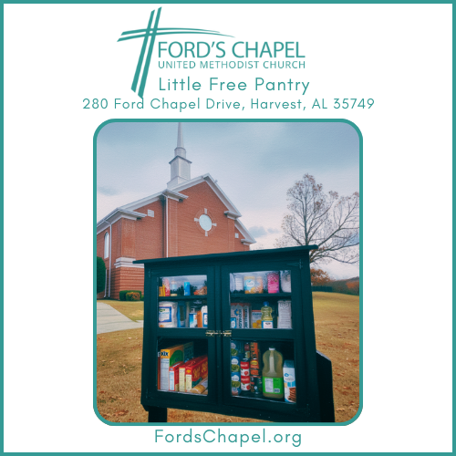 Accessible from Ford Chapel Road, just north of Sparkman High School. Free food to anyone in need. Remember to leave some food for your neighbors. Non-perishable donations welcome. Thank you to the community for your support! Take what you need; leave what you can. Love your neighbor. |