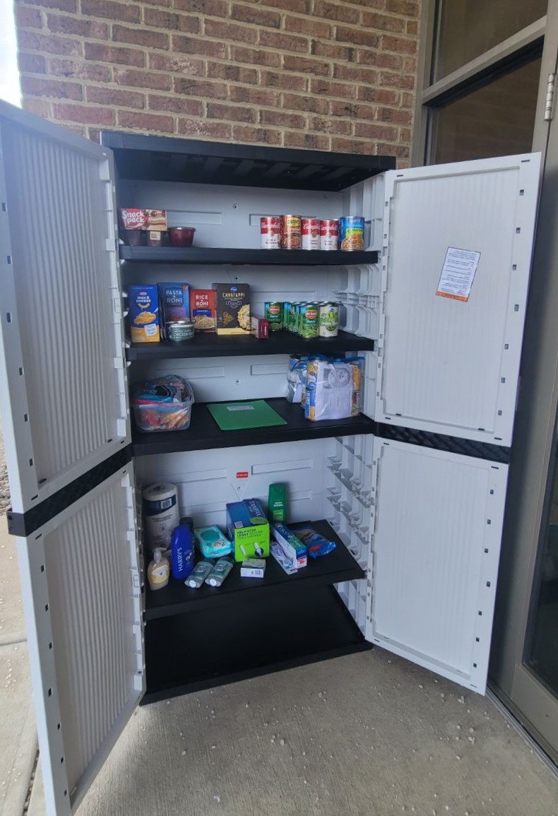 Our Little Free Pantry is at the covered front entrance to our church building. It is open 24/7 and available to anyone in need - no questions asked! Take what you need, leave what you can. Foods in cans or glass jars may be removed during cases of extreme hot or cold weather, but will be accessible to anyone during church office hours. |