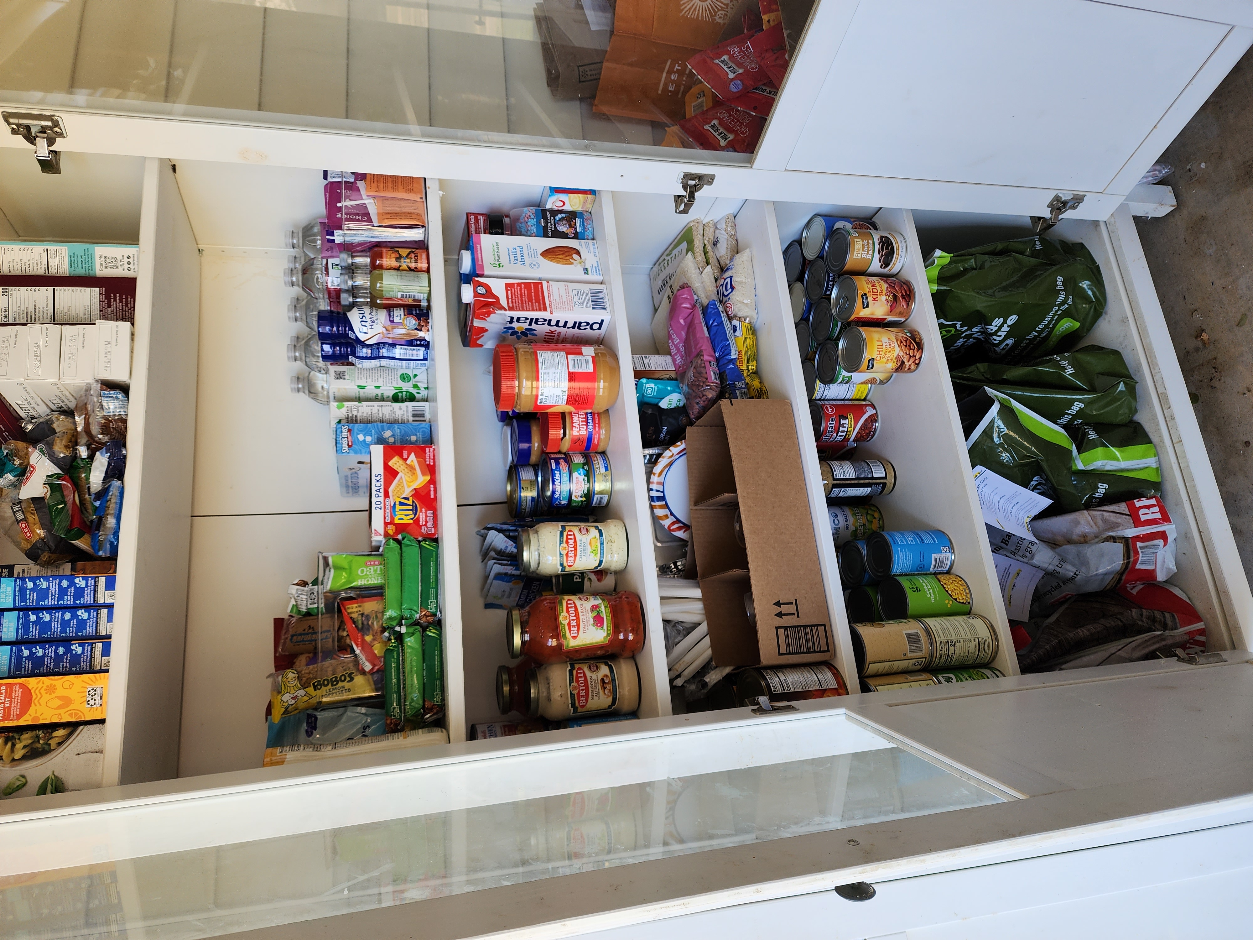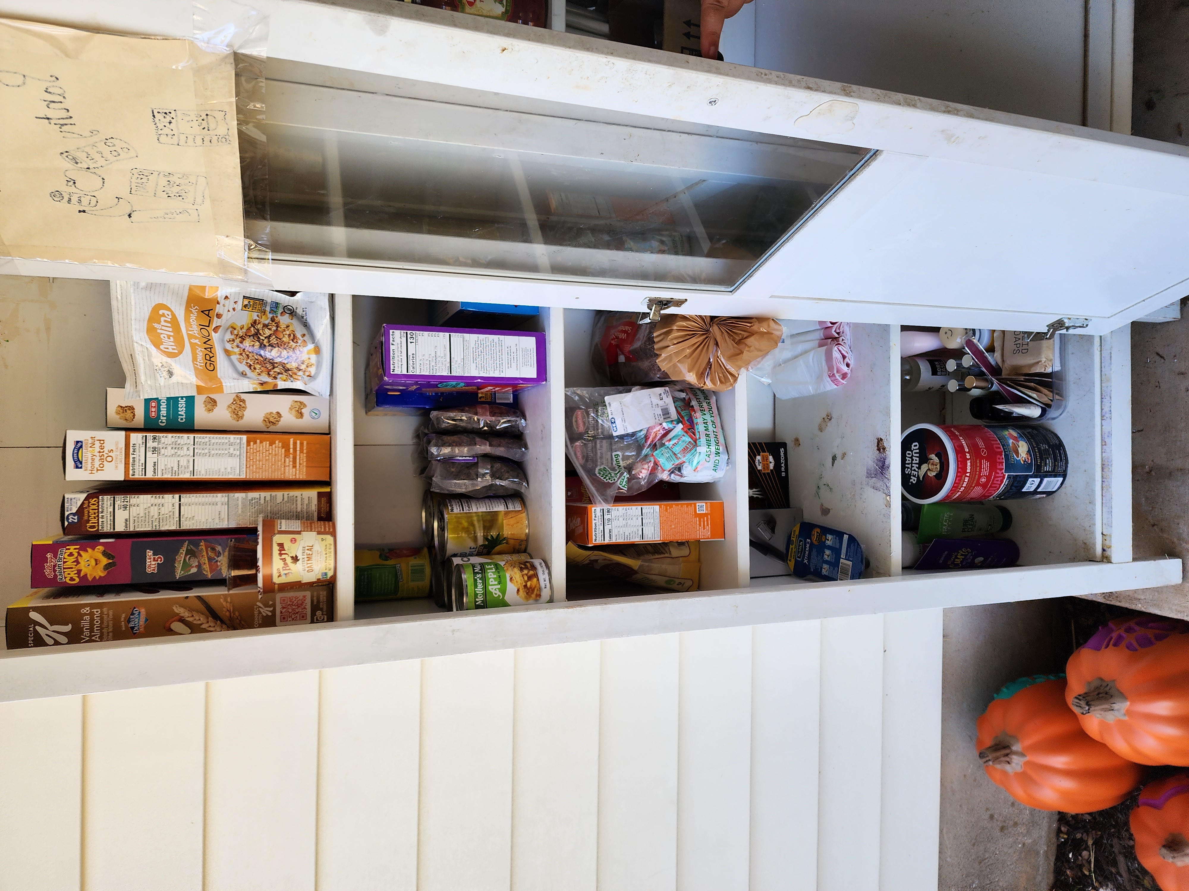| Description | Small neighborhood Pantry at my home that serves anyone that can make it! Restocked by local neighbors and myself. Food, household products, Health and Beauty and Pet supplies when available. |