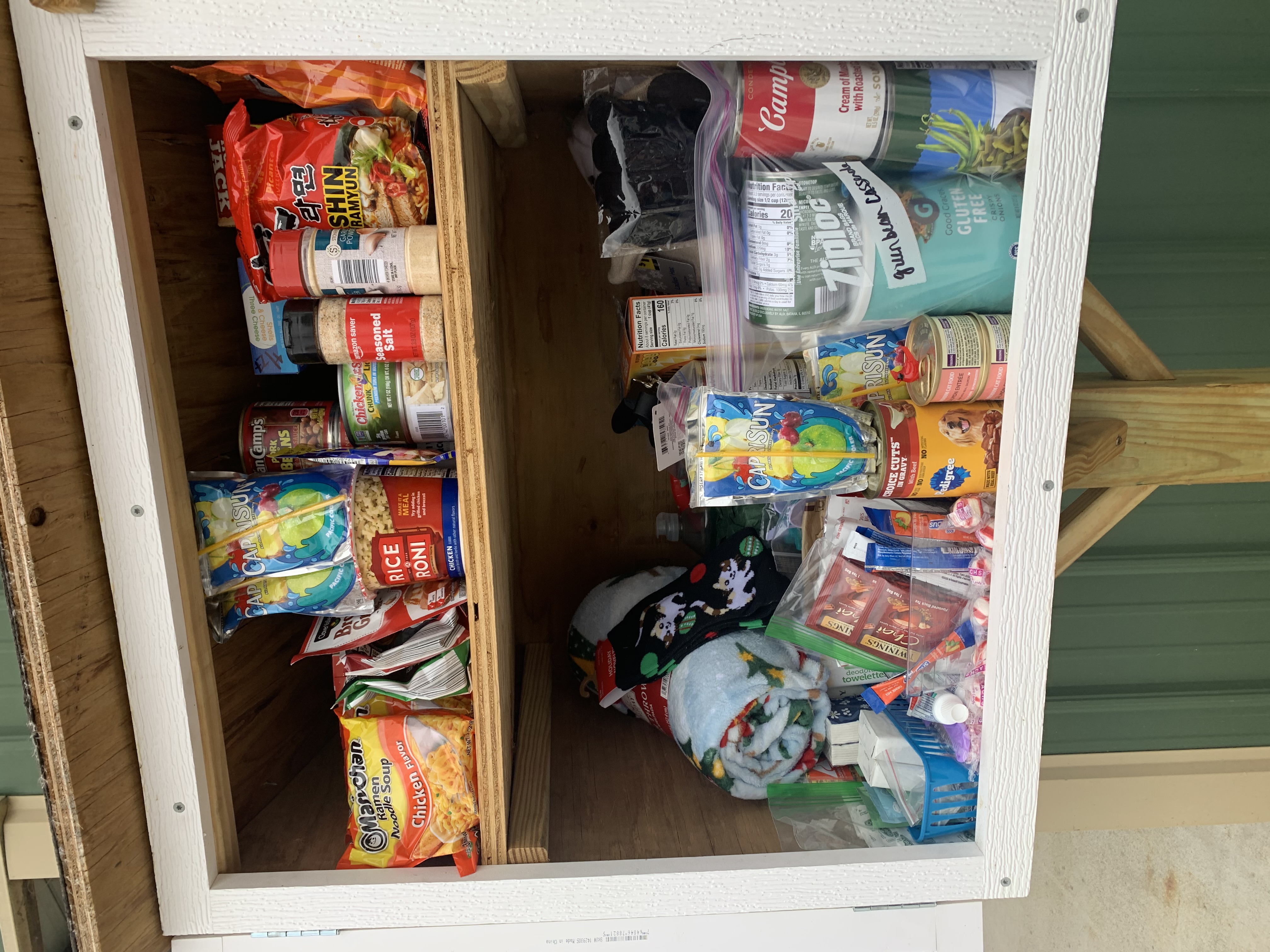 Pantry box is located on right hand side of building. Filled by volunteers in the community. 24/7 access.