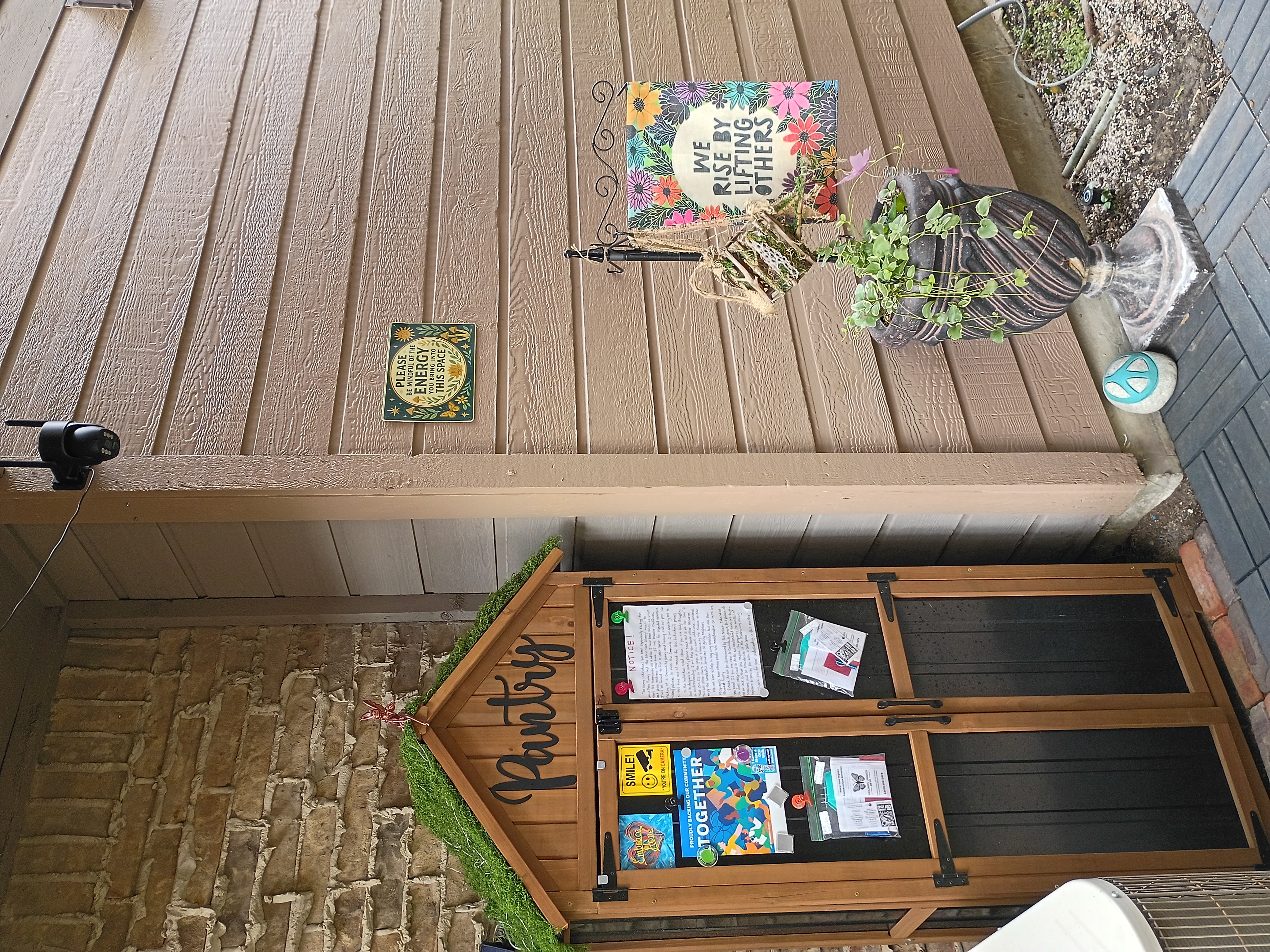 | Description | Little Free Pantry-Library of Enchantment, located at the Richardson Crossroads Condominiums. Pantry is underneath stairs. Library is out front by garage. Take what you need, leave what you can. Accepting sealed, unexpired non perishables & other essentials like diapers, feminine napkins, etc. Please leave overfill donations in container provided or by front door upstairs. Please respect the property & neighbors. Property has cameras. Thank you! |