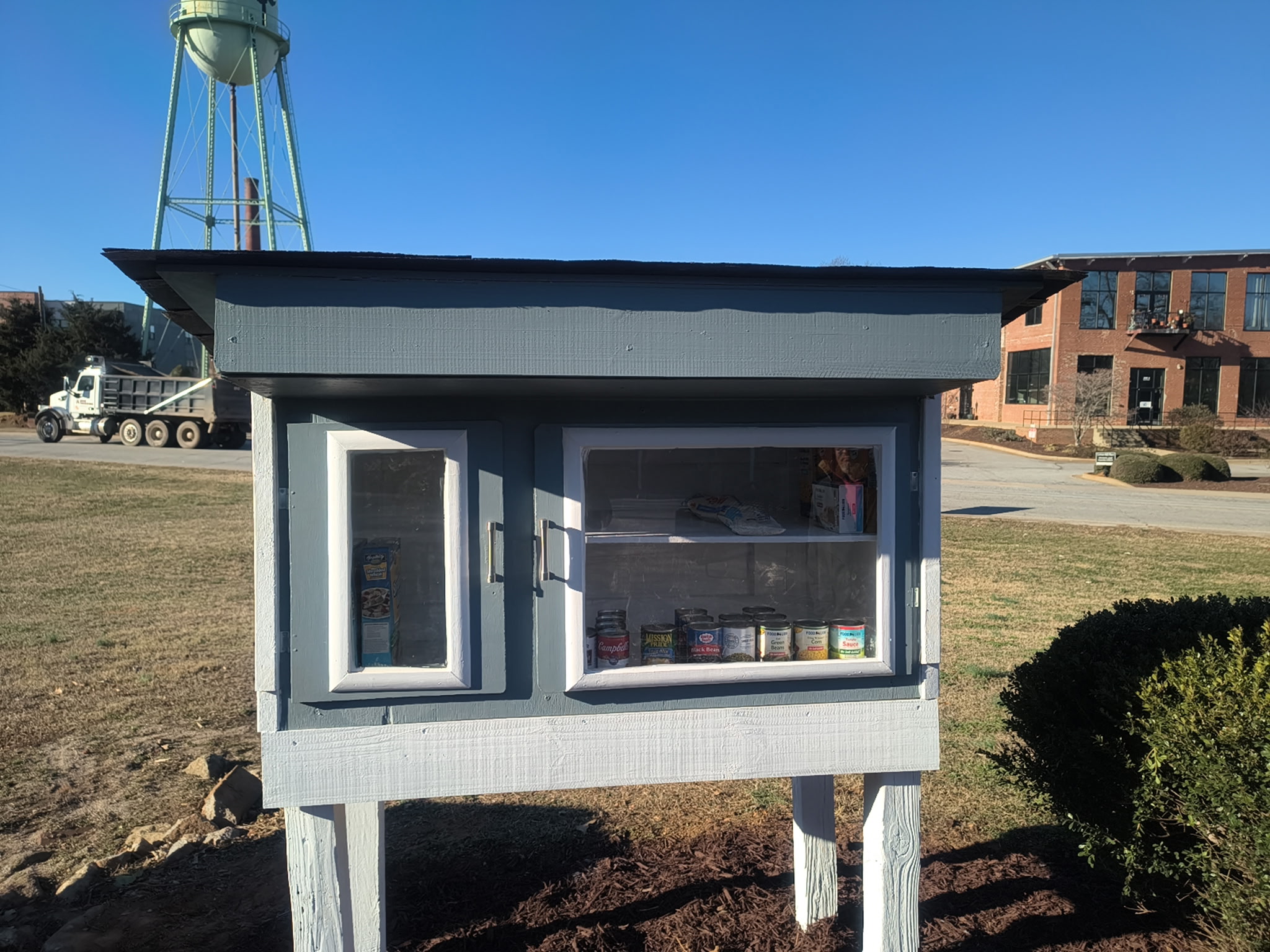 Blessing Box located in Parking Lot in front of the Family Life Center. Box is wood with a gray and white color. Stocked with non perishable food items. Take what you need. Give what you can. Self serve open 24/7. https://www.templesc.org/ |