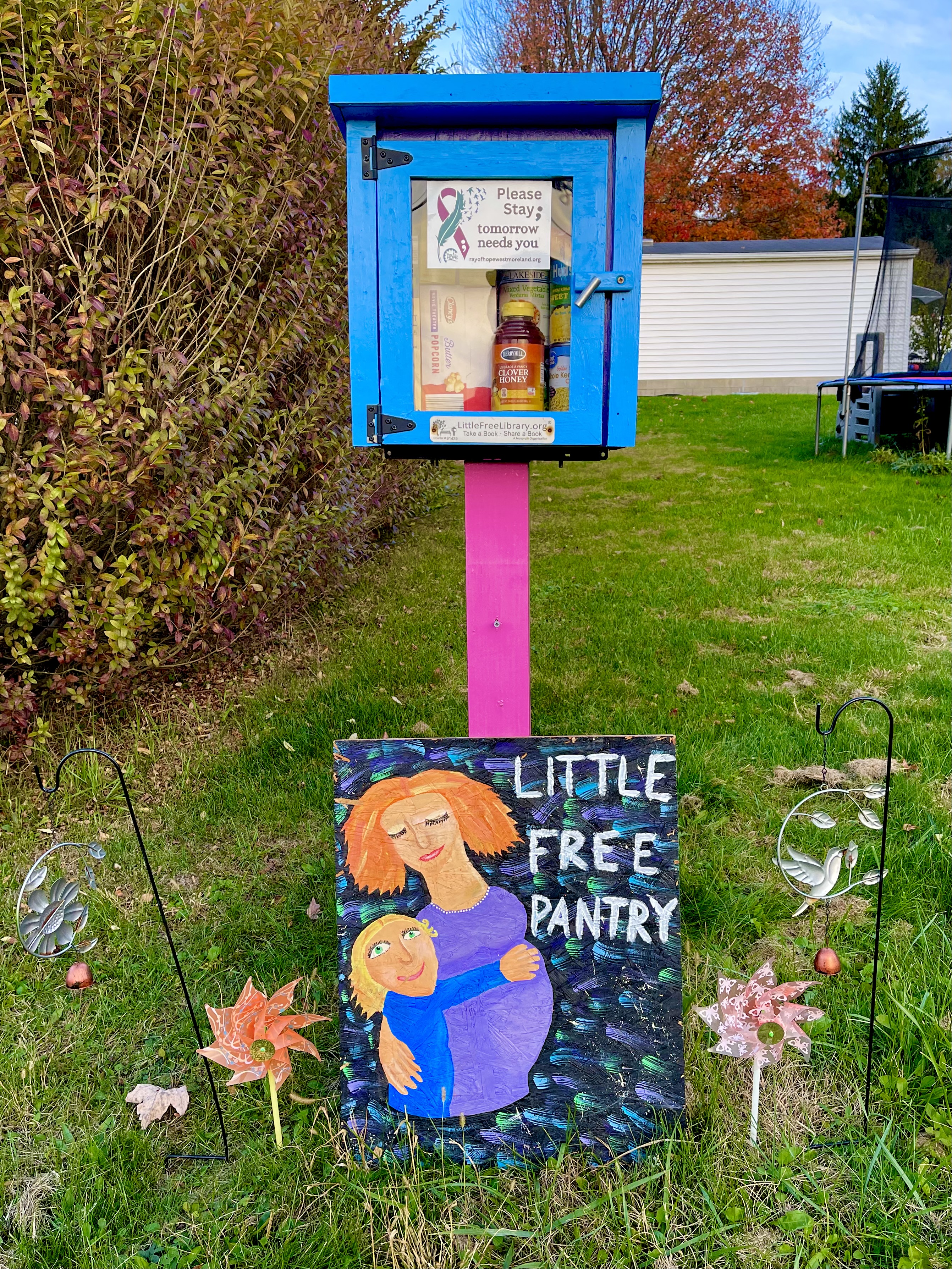 | Description | Formerly a Little Free Library, I transformed my tiny box into a pantry during the 2025 government shut down and never turned back. There seems to be a need in my community and I want to show up for them. Taking care of each other is so important. If you wish to leave a donation and my box is full, please place on my front porch and I will add it to my stock and place in the box as it empties. |