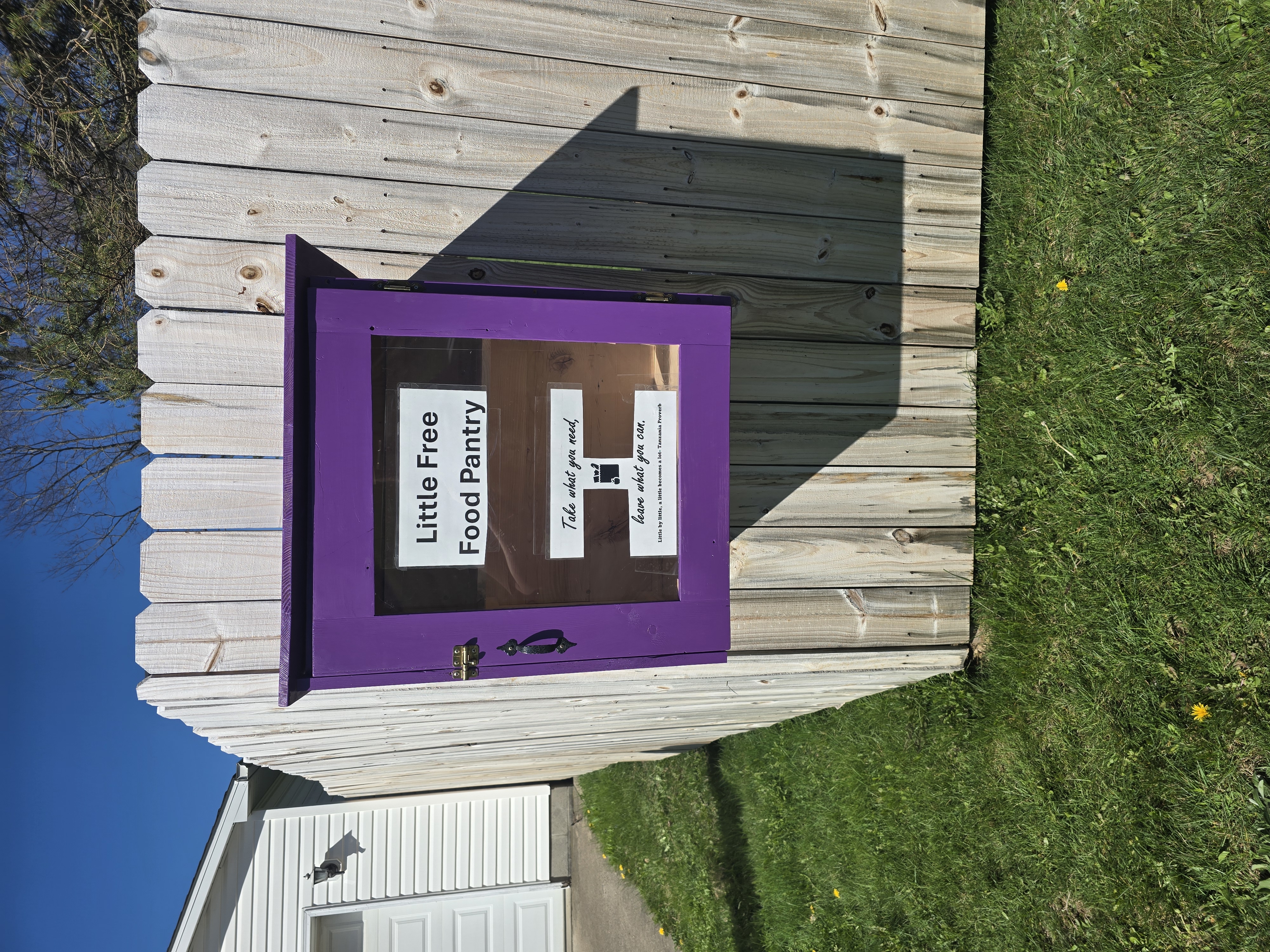 | Description | The Purple Little Free Food Pantry is located on the corner of Fairview Ave and Robinwood Drive in Clarion Pennsylvania |